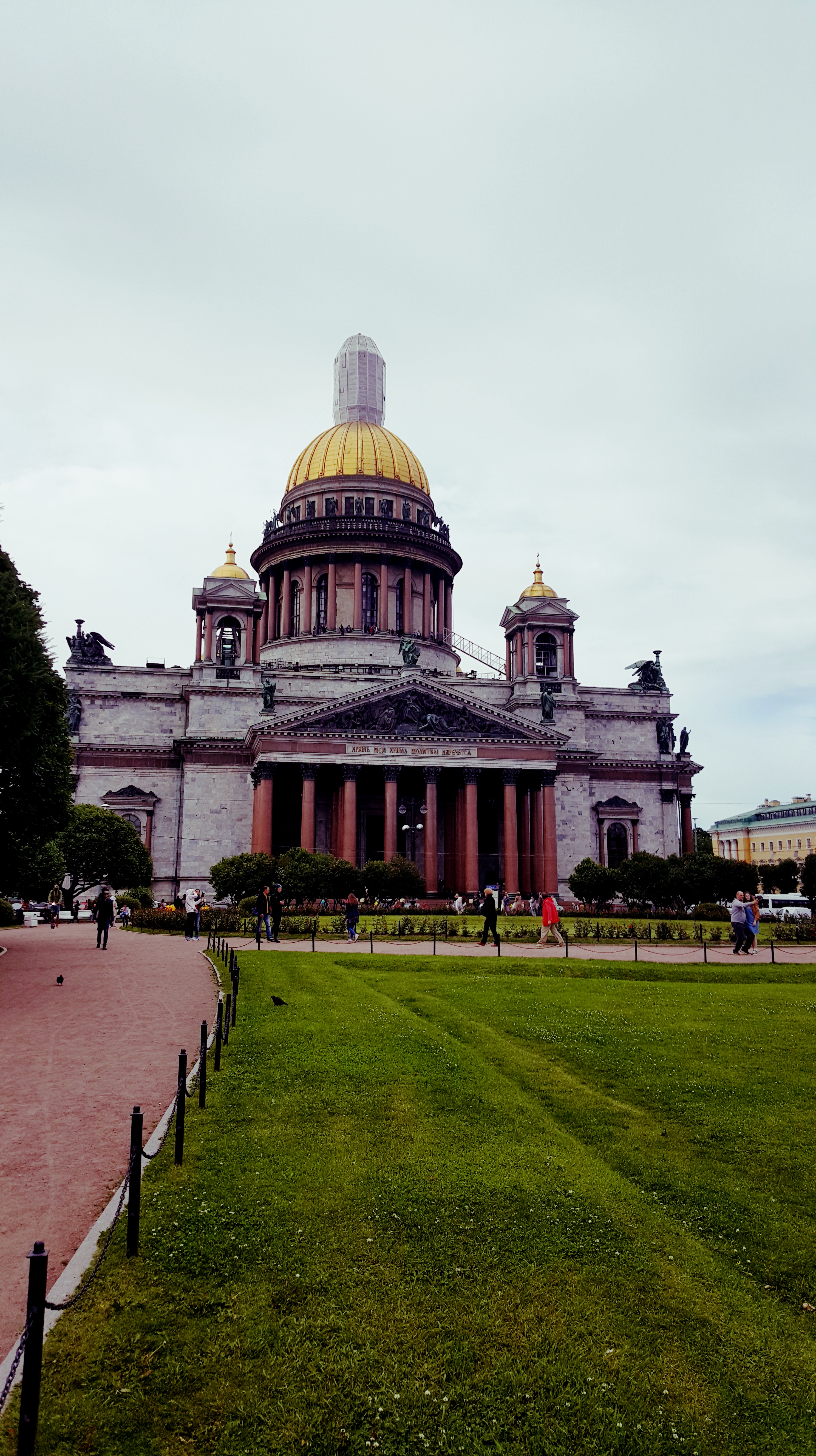 L’entrata principale della Cattedrale di S’Isacco è sulla piazza omonima, al centro della quale sorge il monumento equestre a Nicola I.