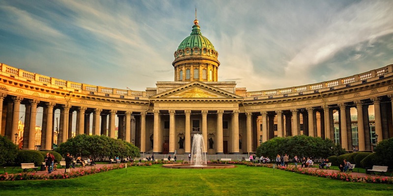 Poco più oltre si trova la piazza di Kazan, dominata dalla Cattedrale della Madonna di Kazan, la chiesa è un’imitazione della Basilica di San Pietro.