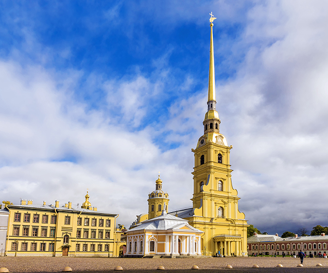 La Fortezza di San Pietro e Paolo, così chiamata in onore dei santi protettori dello zar, sorge sulla piccola isola delle Lepri, proprio al centro della città sulla riva destra della Neva. La costruzione avvenne sotto la supervisione, oltre che dell’imperatore stesso, dell’architetto Domenico Trezzini.