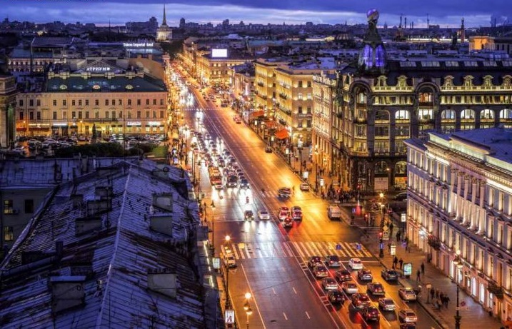 La Prospettiva Nevskij è la via più importante e più nota di San Pietroburgo, immortalata anche nella letteratura dell’omonimo racconto di Nikolaj Vasil’evič Gogol’. Risale al 1710, quando venne costruita una strada su un terreno paludoso. La nobiltà della città cominciò a costruirvi magnifiche residenze, nessuna delle quali doveva superare in altezza il Palazzo d’Inverno.